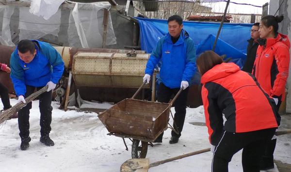 據(jù)了解,鄭春平是一名擁有50多年黨齡的老黨員,老伴因腦出血癱瘓?jiān)诖?5年,無固定收入,生活十分貧困。得知這一情況,黨小組決定開展幫扶活動(dòng)。隊(duì)伍到達(dá)前,老人便早早地在家門口等候,面對攜帶御寒衣物和米面等生活物資的志愿隊(duì)員們,老人哽咽著連連說道“感謝黨啊”!通過詢問,大家進(jìn)一步了解了老人的生活情況及其老伴的身體狀況,并鼓勵(lì)他一定要樹立信心,在組織的關(guān)懷下,共同渡過難關(guān)。老人對黨組織的關(guān)懷表示感謝,也表示了一定會堅(jiān)定信念戰(zhàn)勝困難,言談舉止展現(xiàn)了一名老黨員的風(fēng)采,樂觀的生活態(tài)度感染了在場的每個(gè)人。隨后,志愿隊(duì)員們幫助老人清理了院內(nèi)的積雪和雜物,瑟瑟的寒風(fēng)抵擋不住大家的熱情。通過實(shí)際行動(dòng),不僅為老黨員送上真情和關(guān)愛,更展現(xiàn)了企業(yè)的人文關(guān)懷,進(jìn)一步增強(qiáng)了黨組織的凝聚力。
