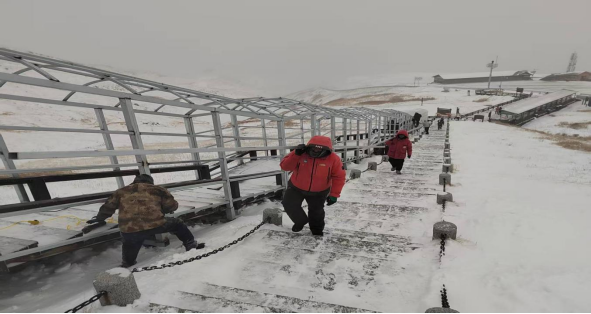 如今,避雪長(zhǎng)廊工程已臨近收官。這道鋼鐵陽(yáng)光避雪長(zhǎng)廊海拔落差約300米,縱跨整個(gè)棧道,既是游客冬季登臺(tái)階看天池的舒適暖廊,也是景區(qū)踐行“以游客為中心”服務(wù)承諾的生動(dòng)注腳,更是股份公司黨建引領(lǐng)提質(zhì)增效工作的融合成果。