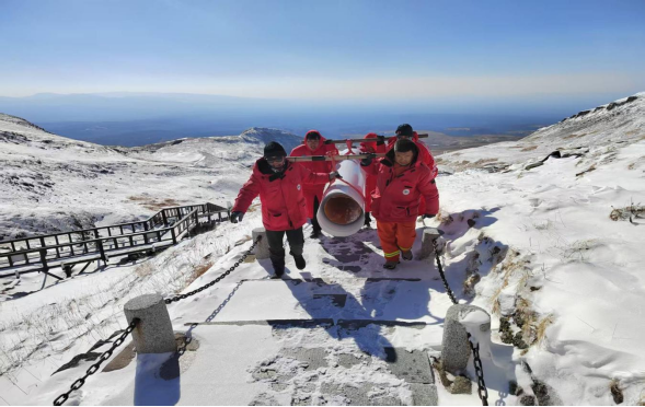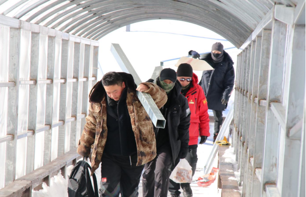 據(jù)了解,公司充分考量冬季長(zhǎng)白山主峰風(fēng)大雪大的極端氣候特點(diǎn),避雪長(zhǎng)廊最終確定采用穩(wěn)固的鋼架結(jié)構(gòu),搭配透明且韌性極強(qiáng)的耐力板,工程總長(zhǎng)900米,寬2米,高約3米。該工程除焊接、切割等專(zhuān)業(yè)性較強(qiáng)的工序外,扛管、釘板等基礎(chǔ)工作均由一線(xiàn)員工完成。如何把近90噸施工材料運(yùn)送到1442級(jí)臺(tái)階沿線(xiàn)是施工最大難題。受地理環(huán)境的限制,最終只能選擇人力運(yùn)送,以每人50級(jí)臺(tái)階進(jìn)行接力,把數(shù)十斤,甚至百斤重的鋼管和耐力板扛送到指定沿線(xiàn)施工點(diǎn),他們每天接力往返近百次。凜冽寒風(fēng)中,員工們肩頭的壓痕、凍紅的雙手,都化作了工程推進(jìn)的堅(jiān)實(shí)印記。