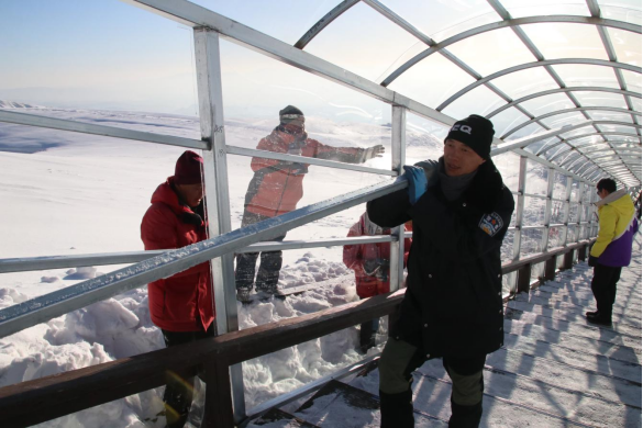 為讓游客深度感受冬季天池的無(wú)限魅力,將“登臺(tái)階看天池”的特色進(jìn)行到底,長(zhǎng)白山西景區(qū)在主峰木制棧道全線(xiàn)搭建鋼構(gòu)陽(yáng)光避雪長(zhǎng)廊,以匠心舉措為游客打造高品質(zhì)游覽體驗(yàn)。
